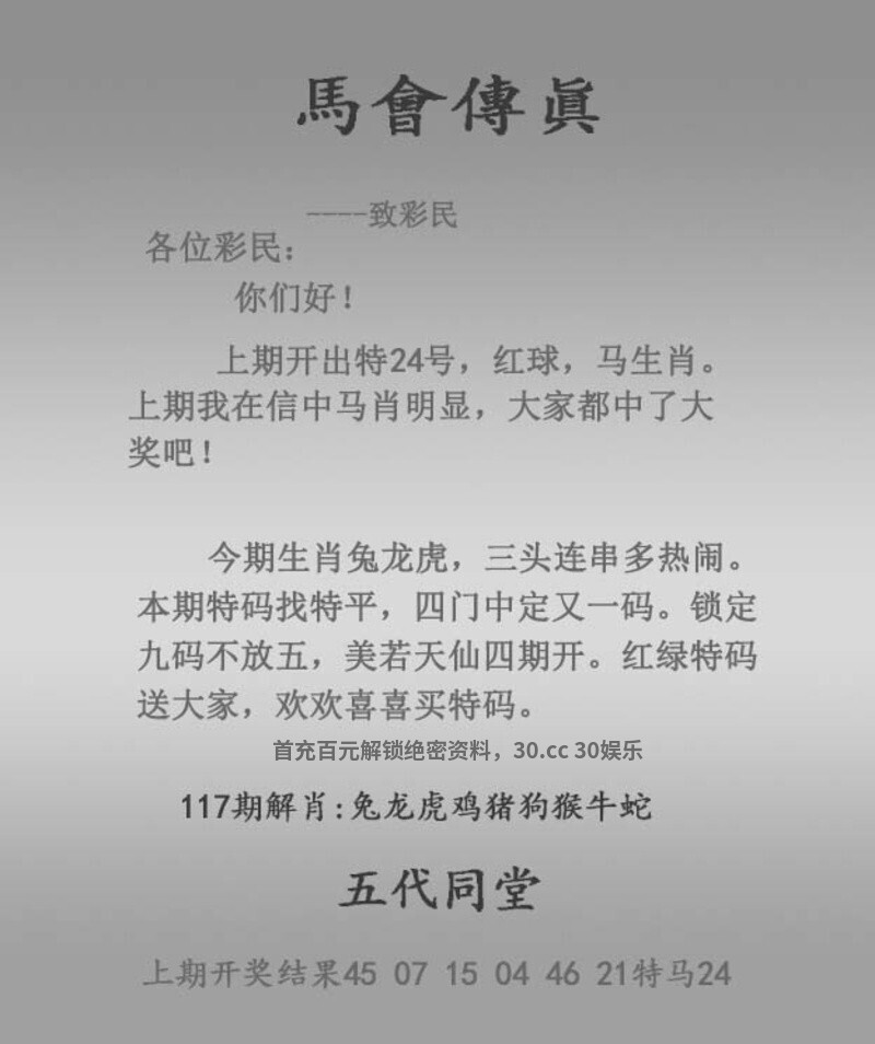| 116期:☆家野中特☆【家禽】开:马24中 |