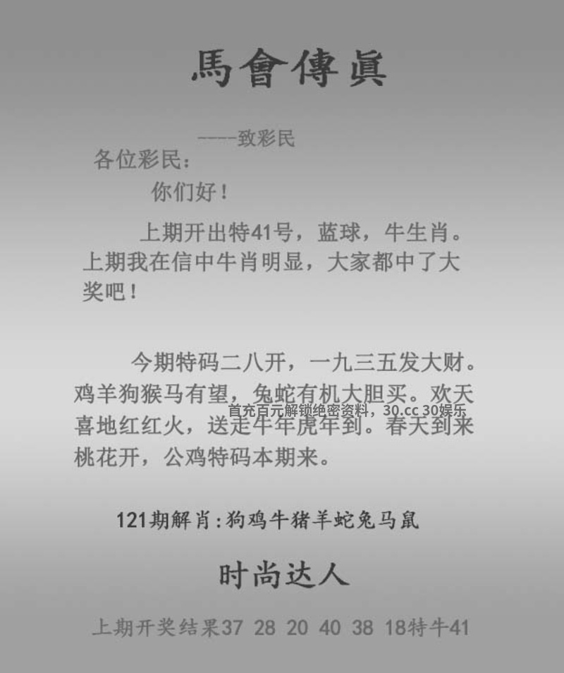 | 121期:马会传真解析: 今期特码二八开,一九三五发大财 鸡羊狗猴马有望,兔蛇有机大胆买 欢天喜地红红火,送走牛年虎年到 春天到来桃花开,公鸡特码本期来 时尚达人 解:今期特码二八开,一九三五发大财,28虎,19猪,35羊,鸡羊狗猴马有望,兔蛇有机大胆买,明肖鸡羊狗猴马兔蛇,欢天喜地红红火,送走牛年虎年到,明肖牛虎,春天到来桃花开,公鸡特码本期来,明肖鸡。 综合生肖:虎猪羊鸡狗猴兔蛇牛 |